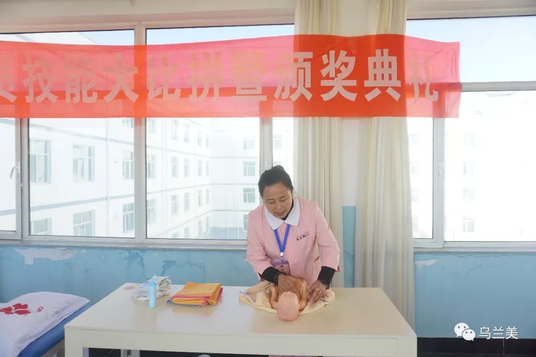 本次技能大比拼的主要比賽內(nèi)容為:母嬰護理組的新生兒撫觸、產(chǎn)后綁腹帶;病人陪陪組的壓瘡護理、測脈搏及血壓。母嬰護理組8人,病人陪護組9人,共計17人參賽。